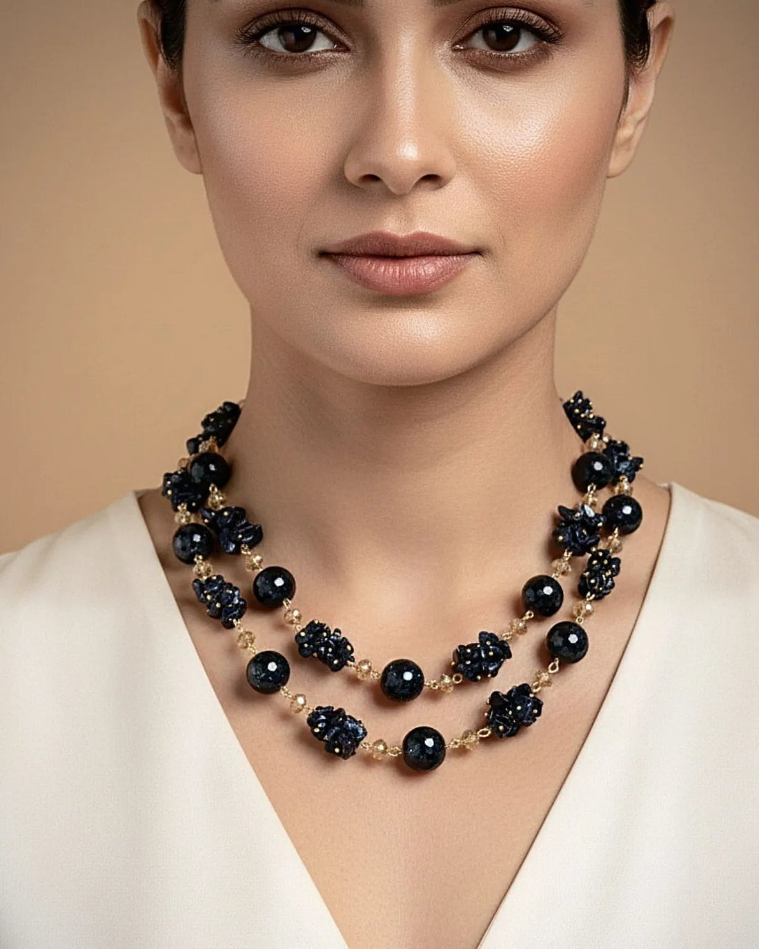 A beautiful blend of earthy serenity and royal elegance, this handcrafted choker features multiple strands...