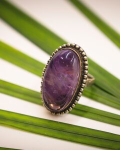 Let your intuition shine with our Amethyst Adjustable Ring. Celebrated for its rich purple tones and natural beauty, this gemstone is believed to bring clarity, calm, and protection to its wearer. Set on an adjustable band for effortless comfort, each handcrafted piece is as versatile as it is elegant—perfect for adding a touch of serenity and sophistication to any outfit.