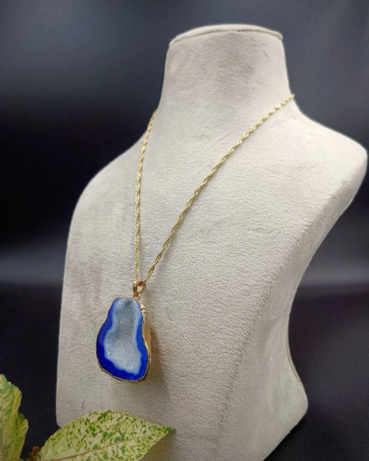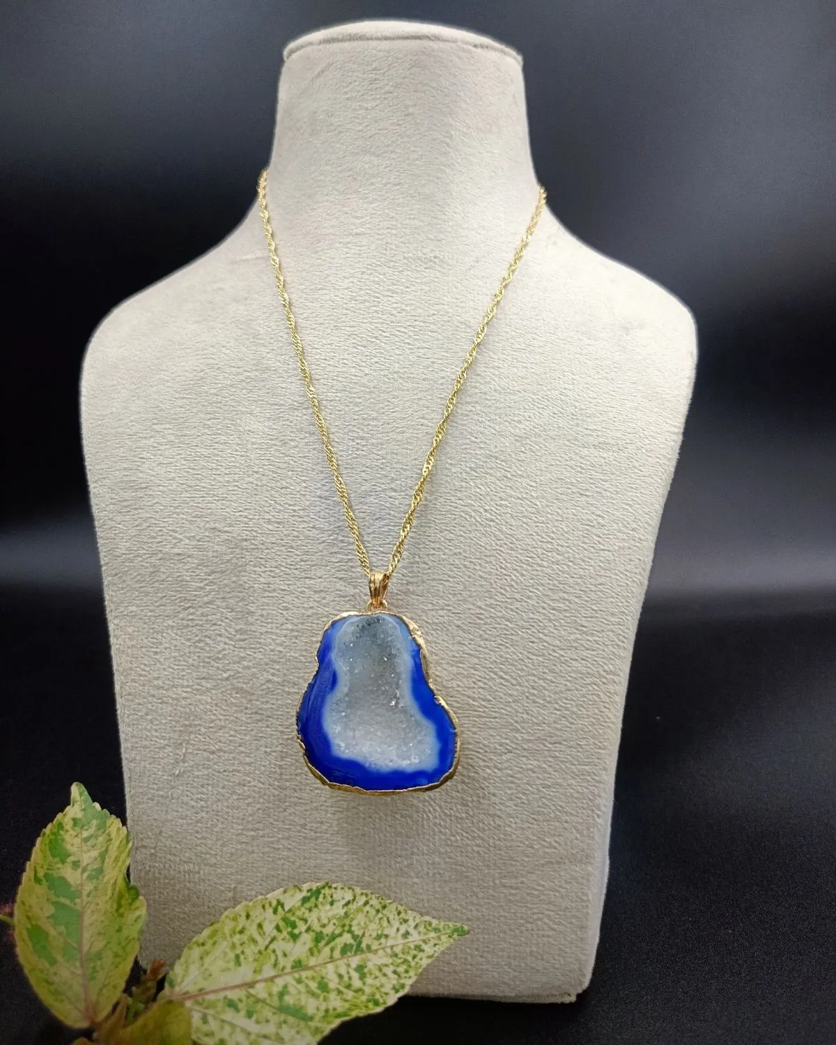 Crystal Cove Druzy Stone Pendant Necklace – Blue Ocean