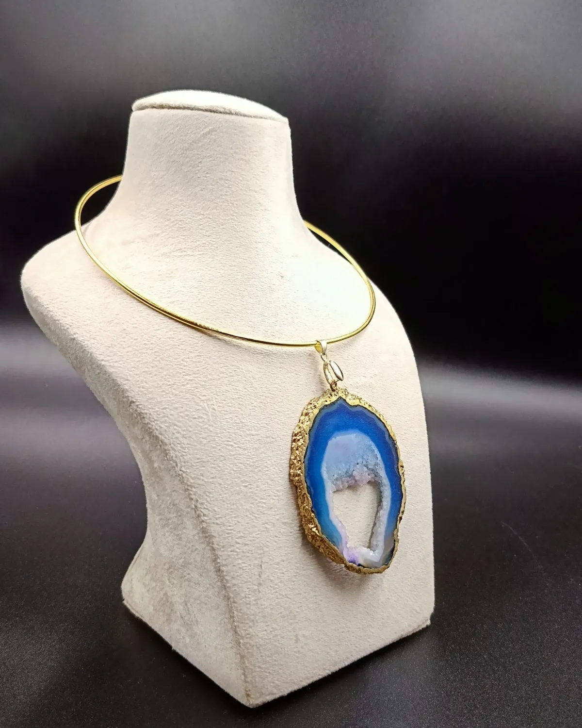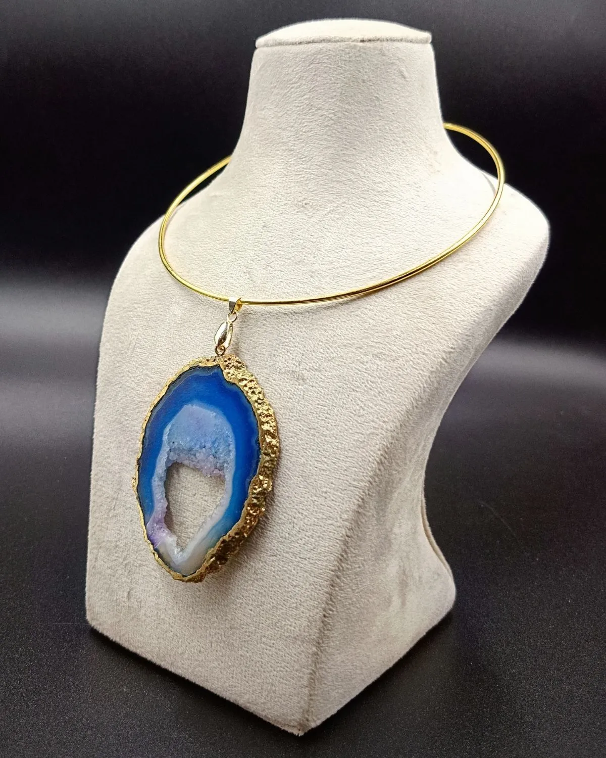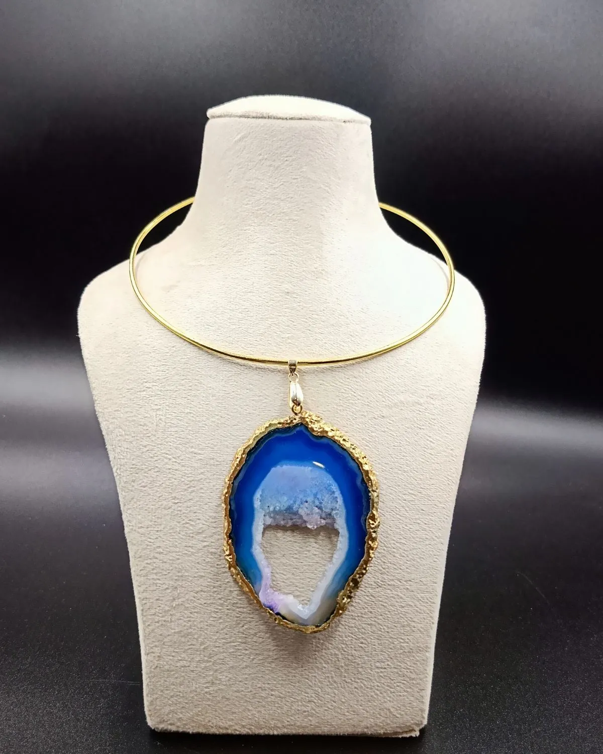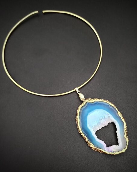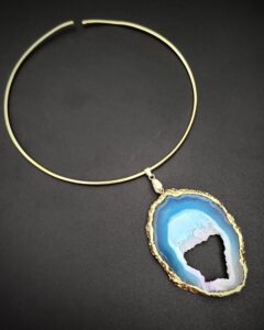6.5″ Brass Hasli with Statement Agate Slice Pendant.