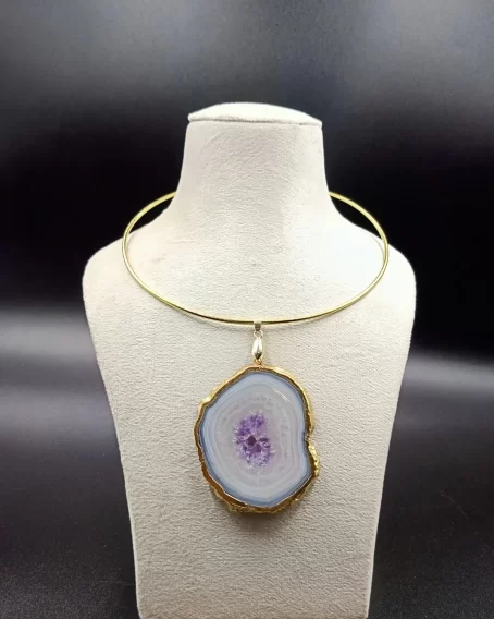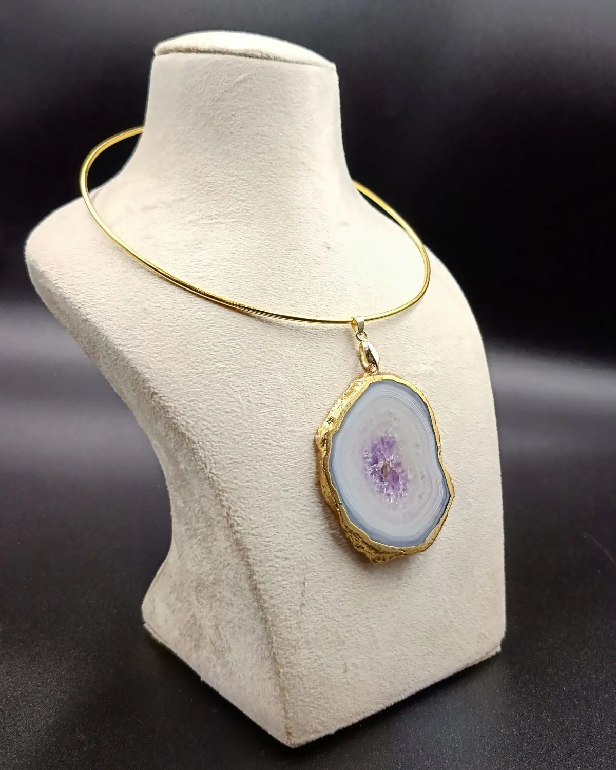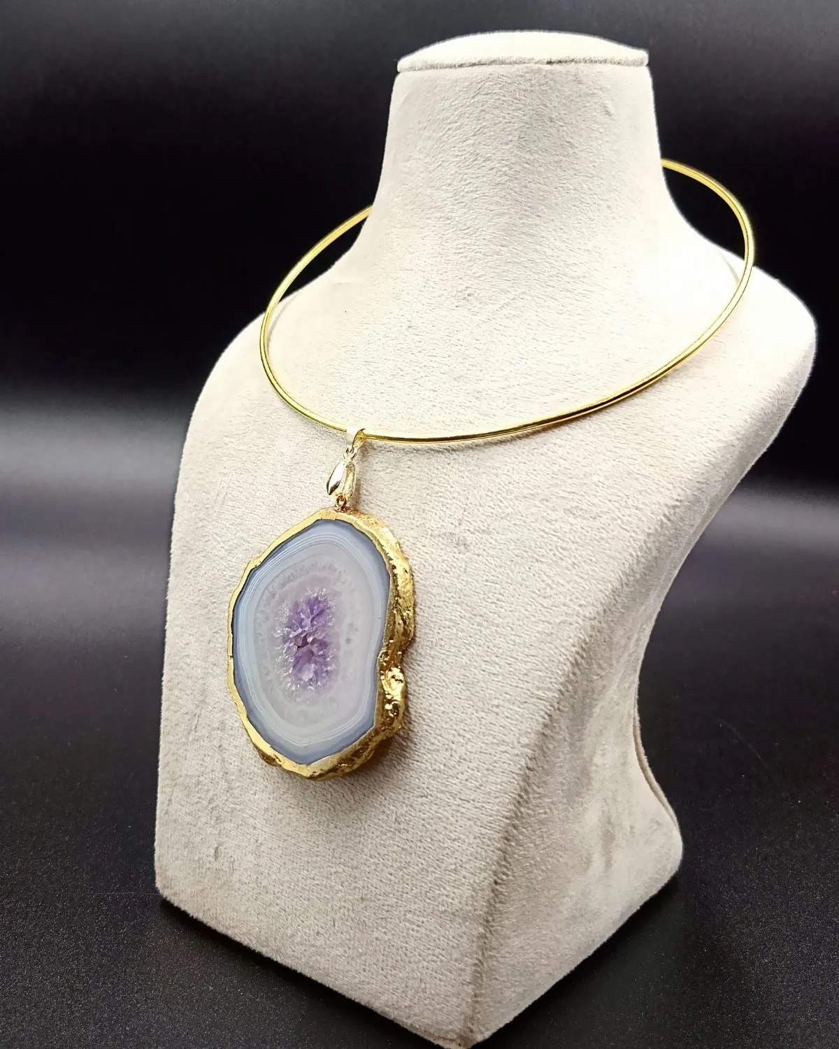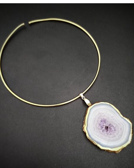 6.5″ Brass Hasli with Statement Agate Slice Pendant.