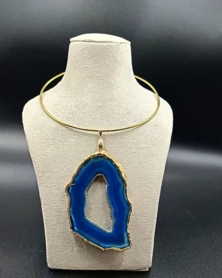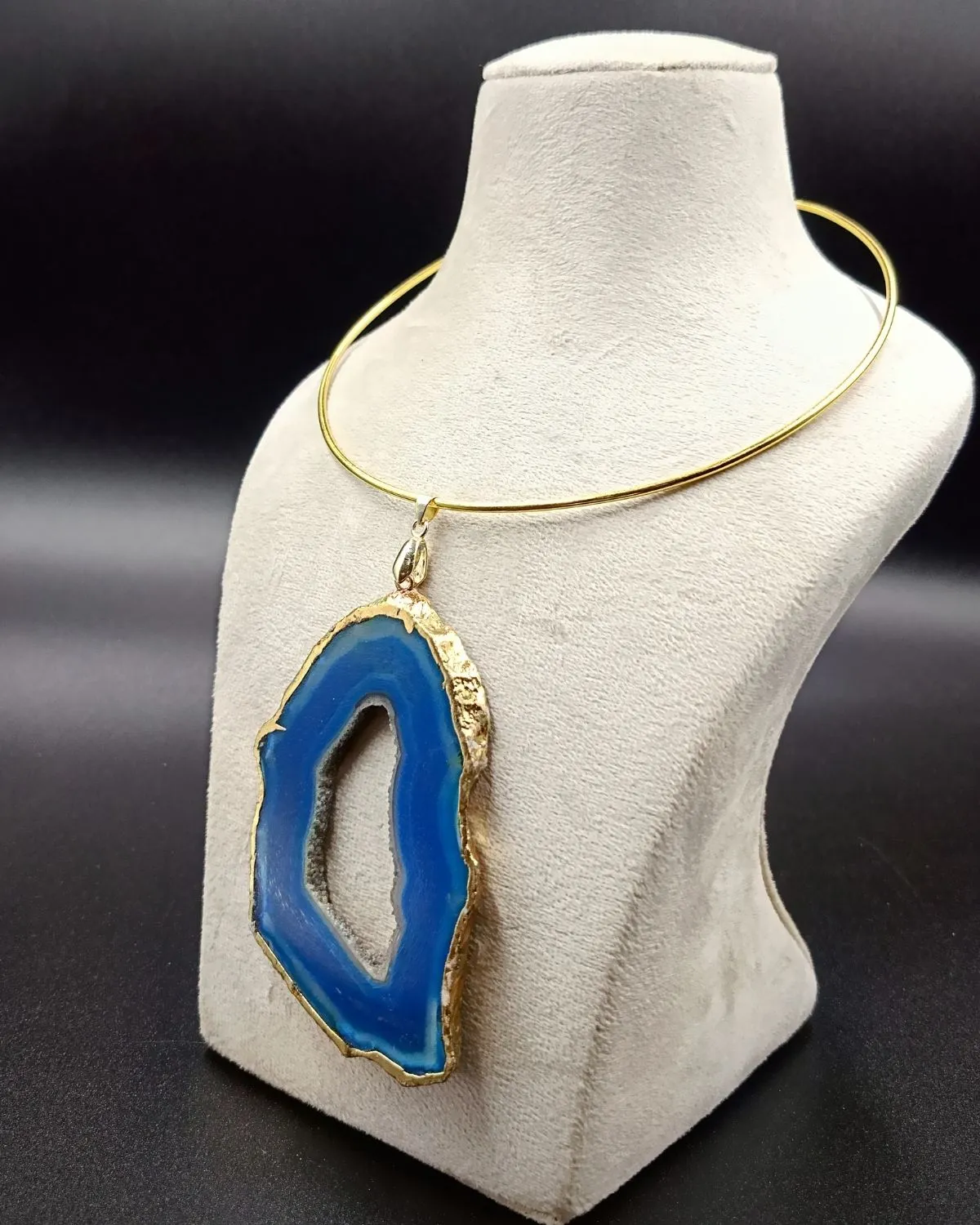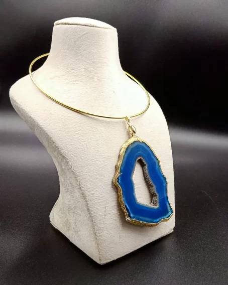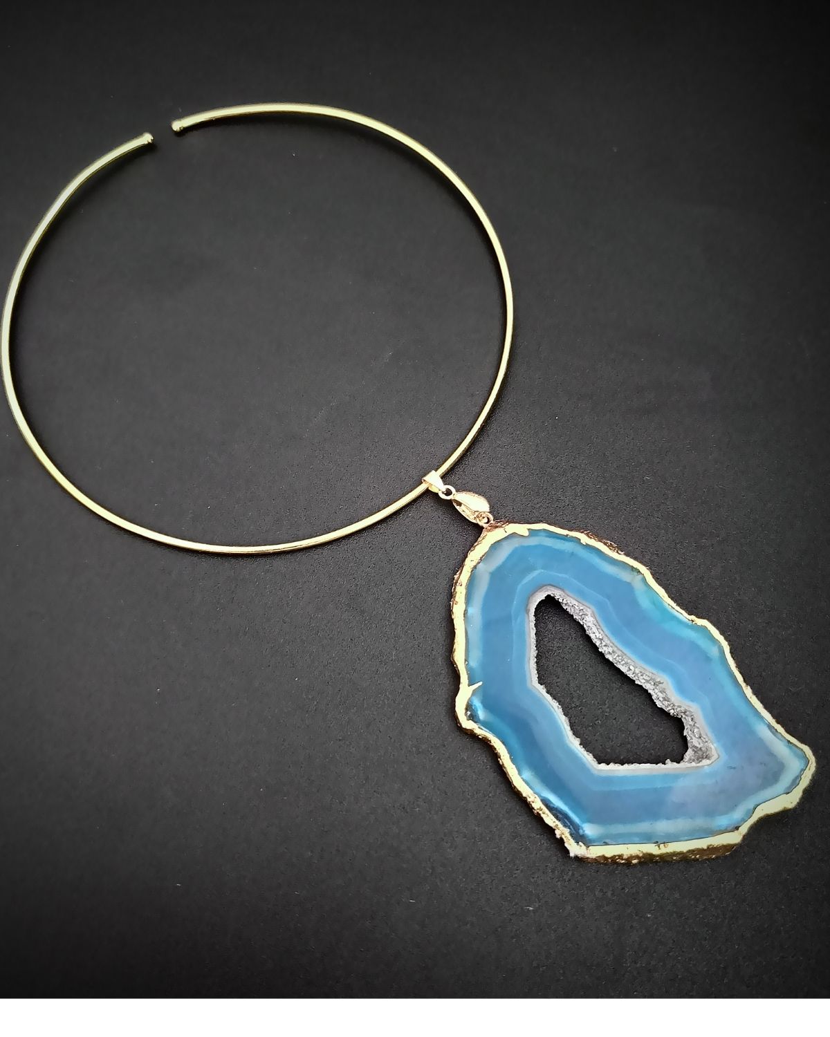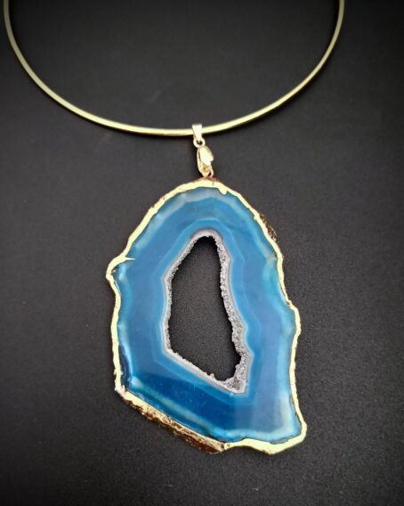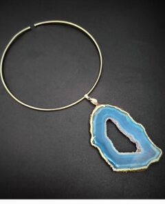 6.5″ Brass Hasli with Statement Agate Slice Pendant.