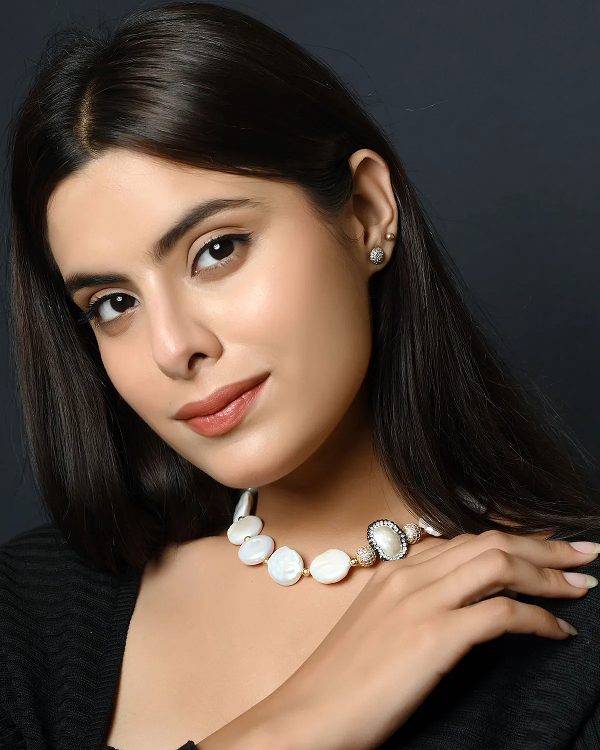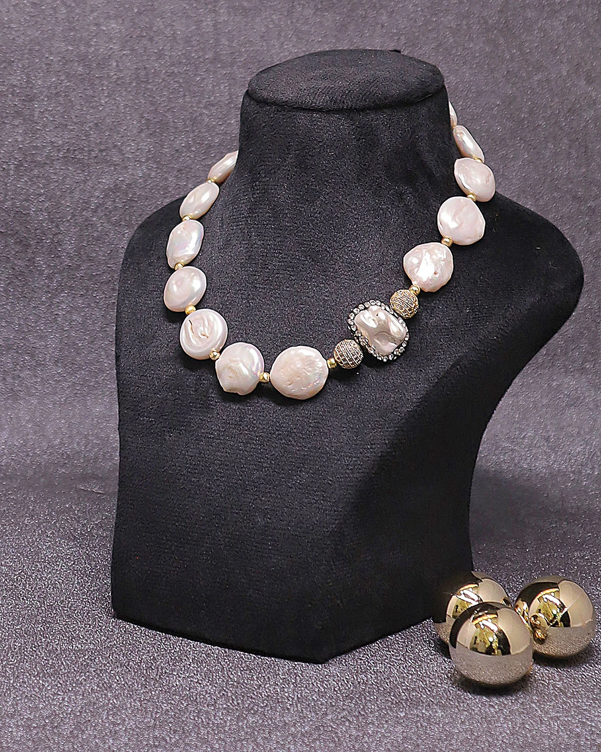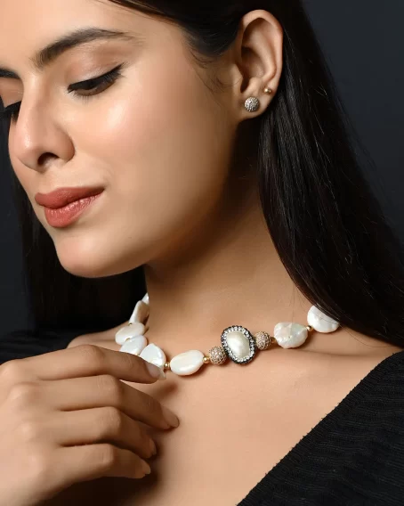 Crafted with premium anti-tarnish jewellery components, the necklace offers durability and a lasting shine that complements the natural glow of the pearls. Renowned for symbolizing purity, wisdom, and grace, coin-shaped pearls add a refined touch, making this unique handmade necklace perfect for both special occasions and everyday wear.