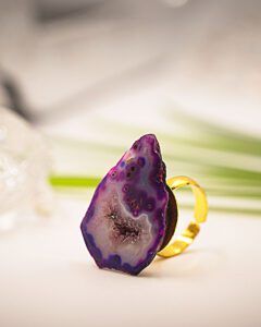 Be the first to review “Shimmer Nest Purple Adjustable Ring with Geode Stone.”