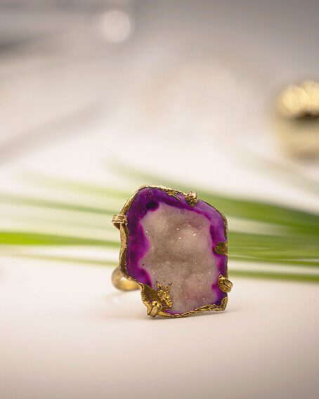 Shimmer Nest Purple adjustable Ring with Geode Stone.